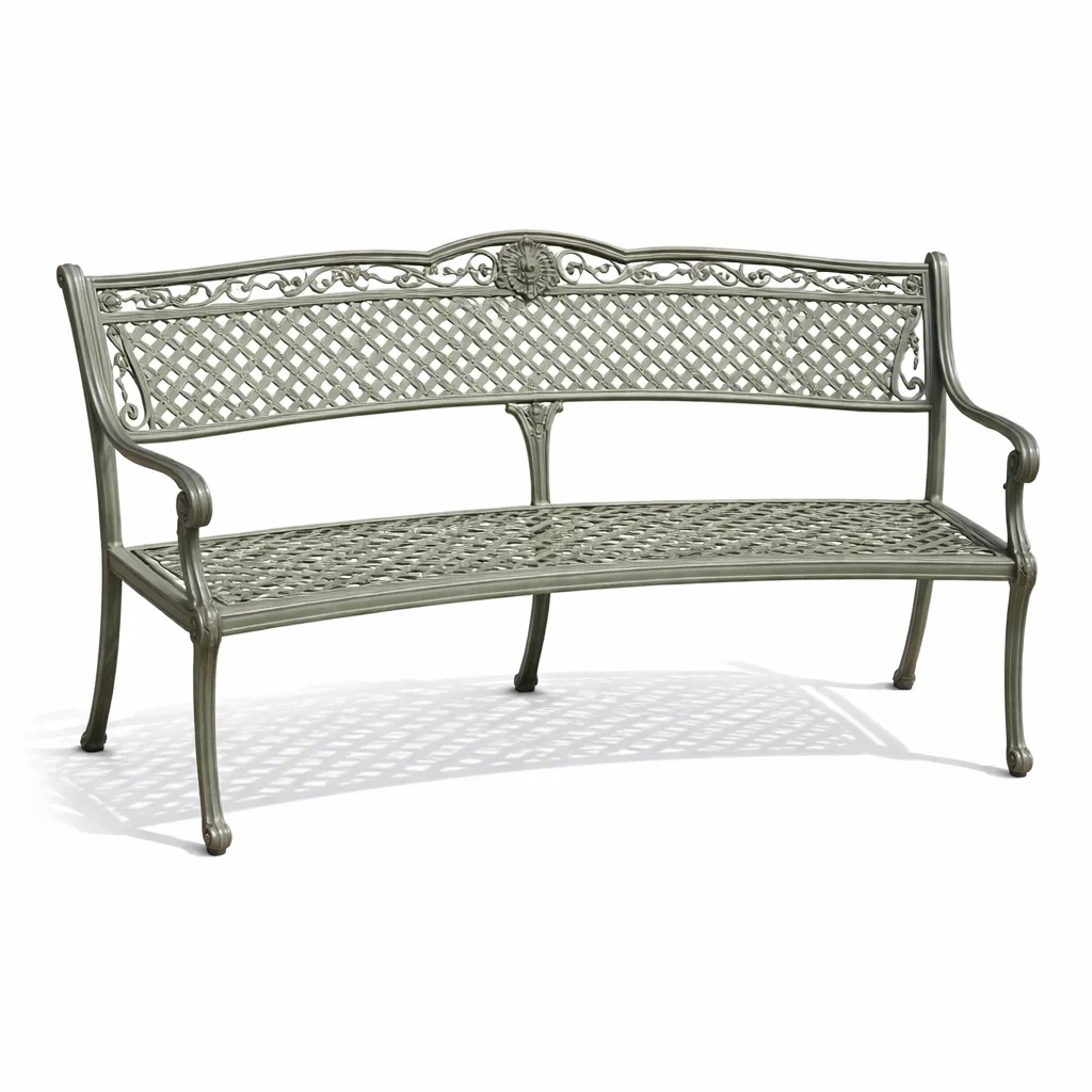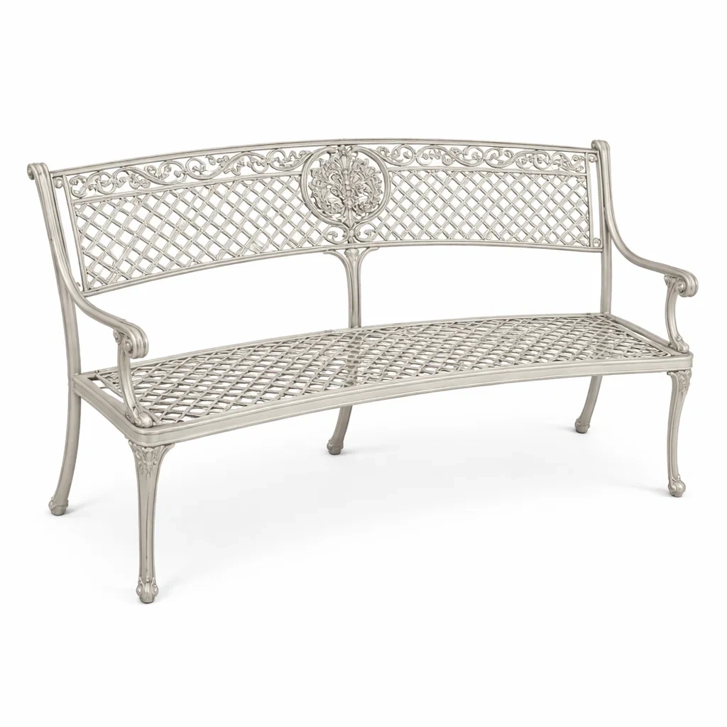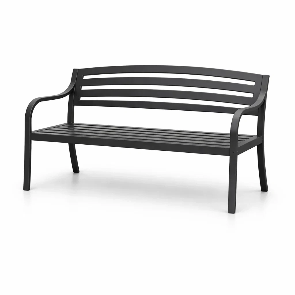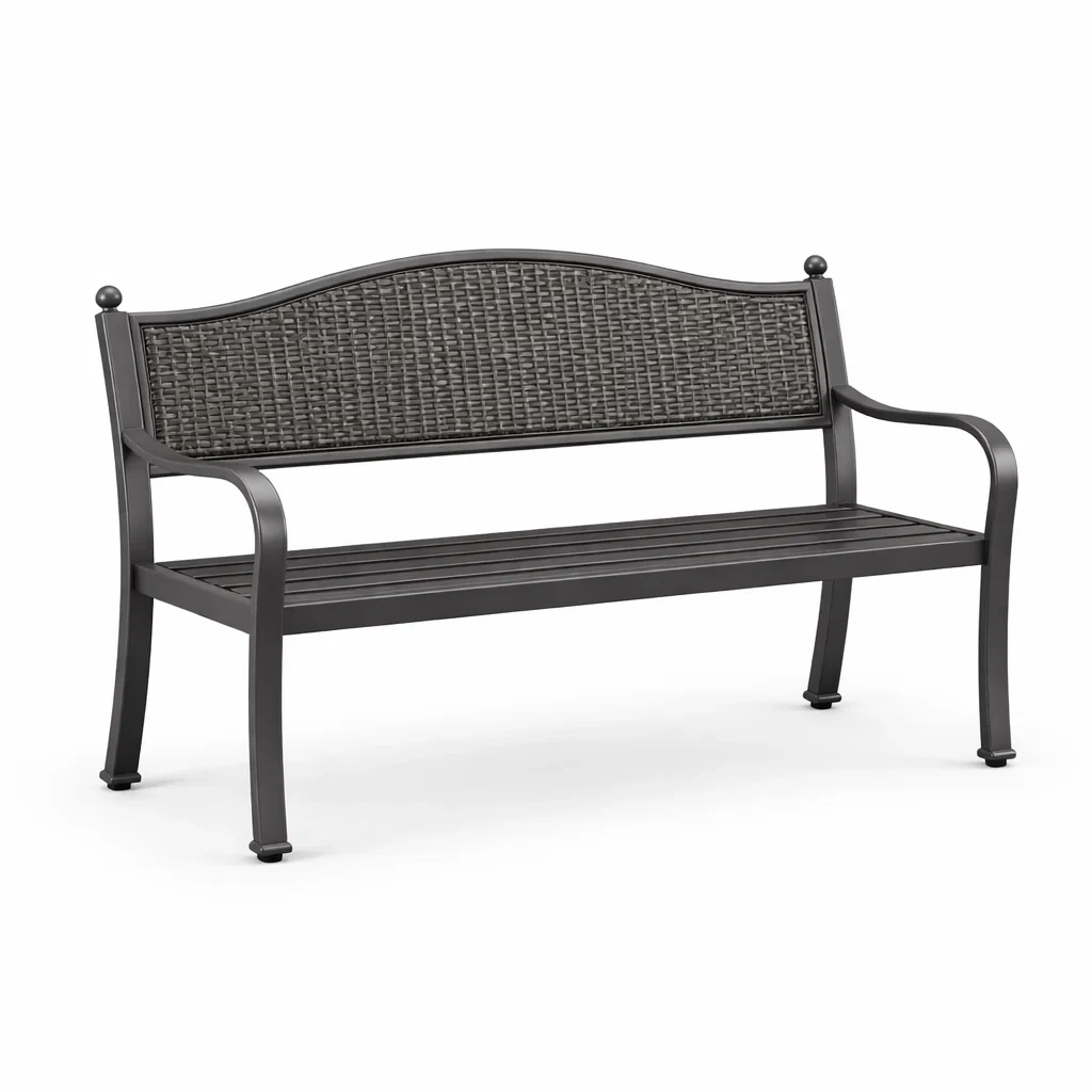 Banc de jardin en métal noir et argent avec dossier à motif soleil