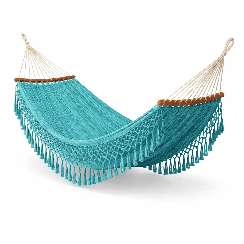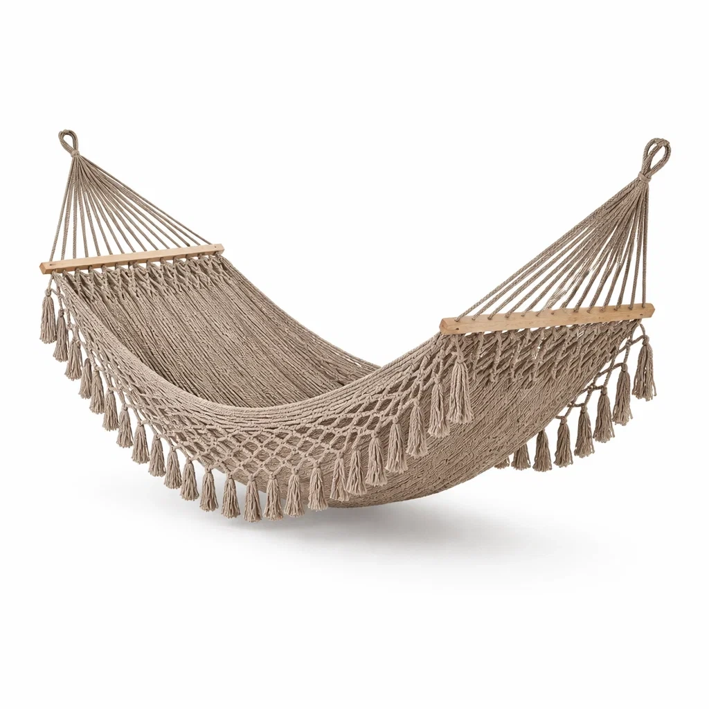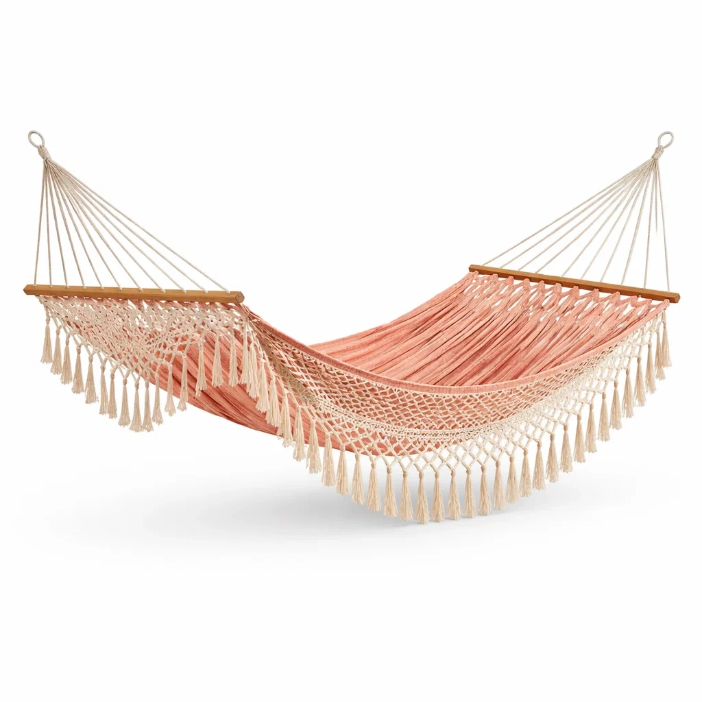 Hamac en toile de coton avec barres en bois 200 x 150 cm