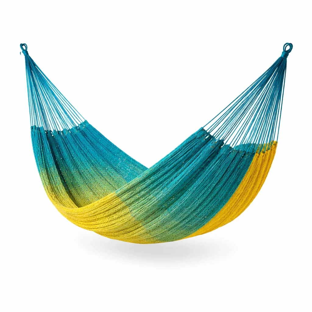 Hamac en coton et polyester bleu et jaune 200 x 150 cm
