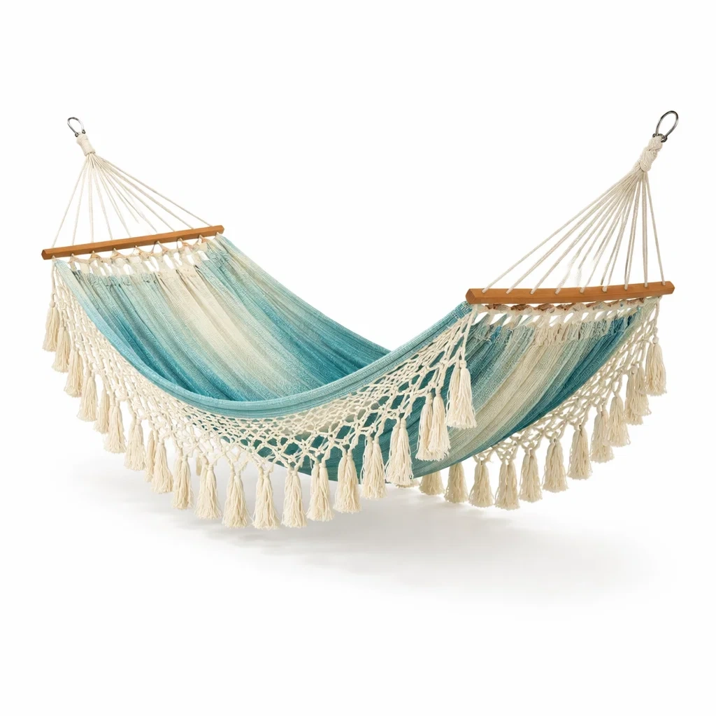 Hamac en coton et polyester bleu dégradé 200 x 140 cm