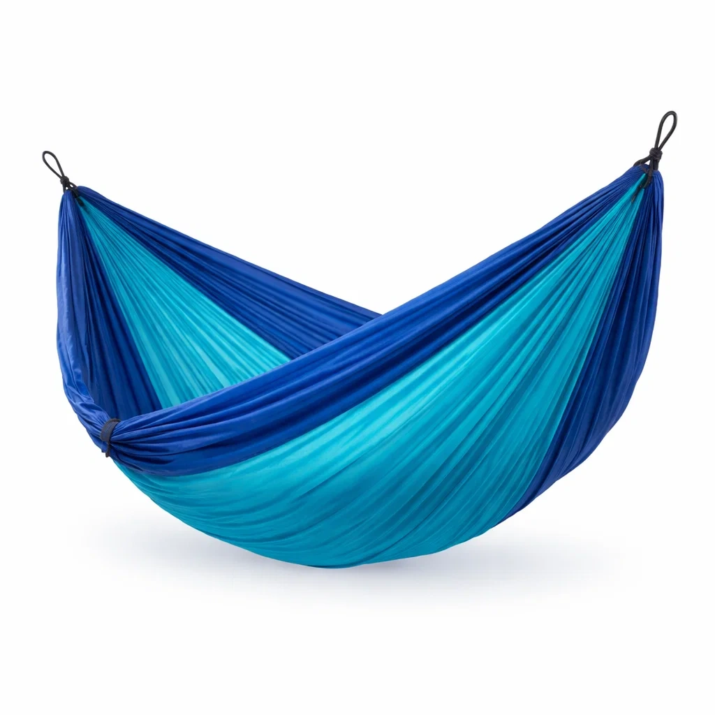 Hamac en nylon parachute bleu clair et foncé 260 x 140 cm