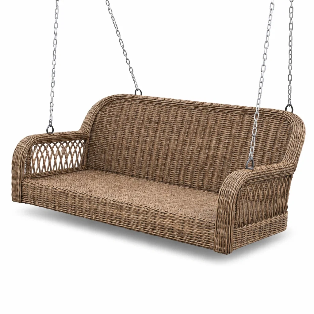 Fabriquée en osier tressé, cette balancelle mesure 140 cm de longueur. Elle est suspendue avec des chaînes en acier robuste. La structure peut supporter jusqu'à 200 kg. Nettoyez avec un chiffon humide et évitez l'exposition prolongée aux rayons UV.