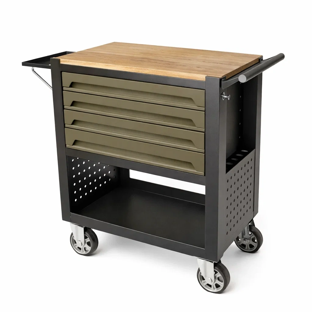 Fonctionnalités: 4 tiroirs, Roulettes pivotantes avec freins, Plateau supérieur spacieux