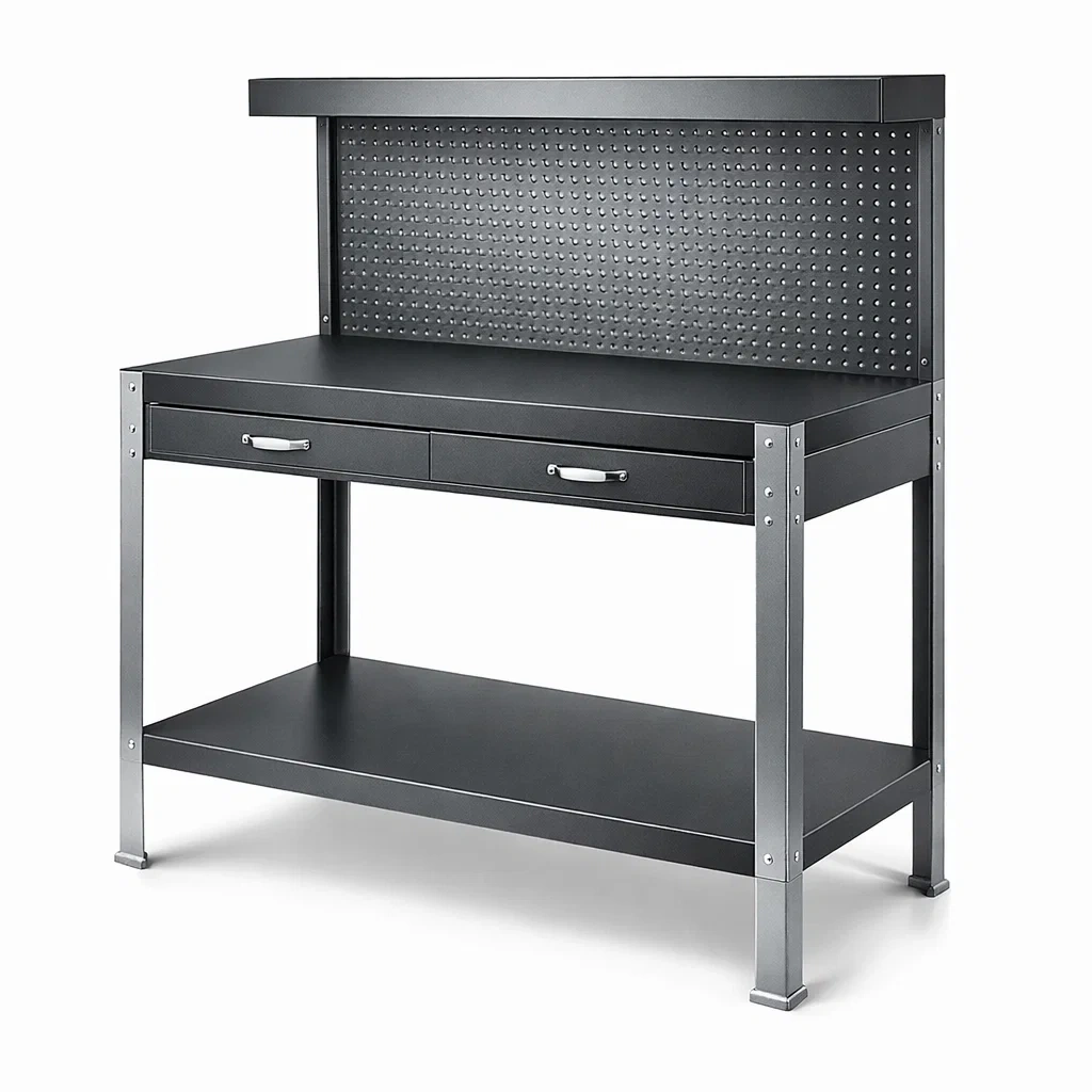 Éléments : 1 étagère, 2 tiroirs, panneau perforé pour outils